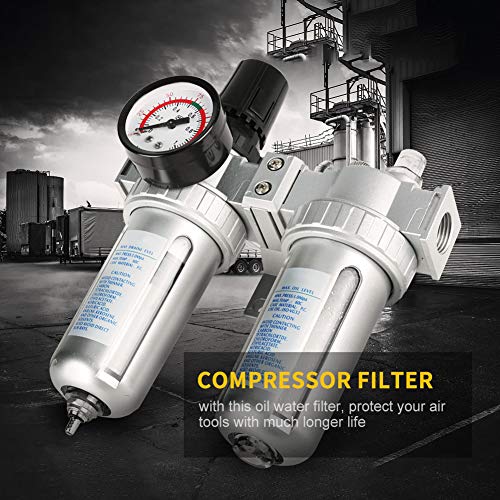 Specification: Compressor Filter – 1/2 “Luchtdruk Compressor Filter Gauge Trap Olie Water Regulator Gereedschap Kit