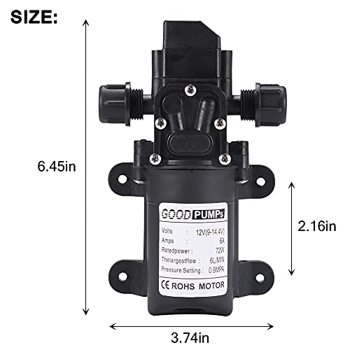 Specification: LTXDJ Membraan Waterpomp, 12 V 72 W Automatische Schakelaar Hogedruk Auto Wassen Spray Waterpomp 6L/min 116PSI voor…