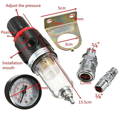 Specification: Luchtfilterregelaar 1/4″30-120PSI Luchtcompressor Filter 40 Micron Water Separator Trap Tools Kit met Regulator Gauge Licht Gewicht Filterdeeltjes Water/olieafscheider (Color : Noir)