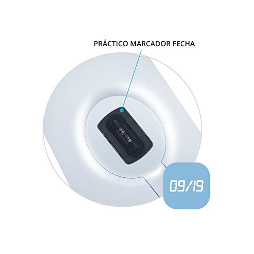 De bovenkant van het deksel bevat ook een praktische datummarker; in één oogopslag kunt u weten hoe lang het filter overblijft of dat het tijd is om het te vervangen.