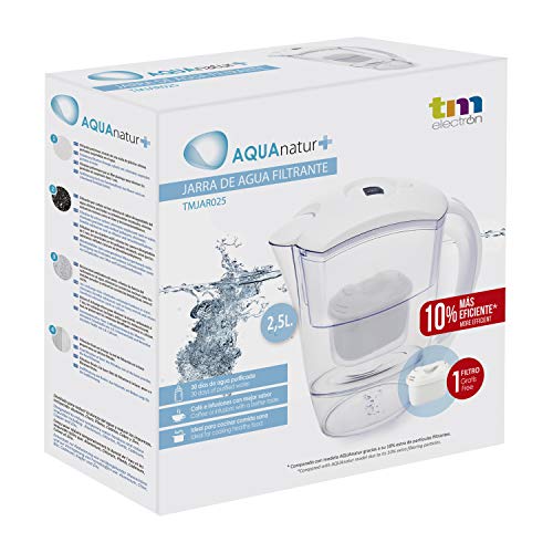 Tmjar025wh waterfilterkruik van tm electron compatibel met aquanatur+ en brita maxtra+ cartridges; Speciaal ontwerp voor koelkast met 2 5L capaciteit en datumindicator voor filterverandering; Uw ideale toevoeging thuis die u veel tijd en geld bespaart op gebotteld water; tm elektron, innoveren in de dag; waterfilterkruik compatibel met TM gegalvaniseerde cartridges Aquanatur+ en Brita Maxtra+ – Haal water in slechts een paar seconden ideaal voor het drinken of koken van puur, schoon en gezonder. Speciaal ontwerp exacte metingen voor het plaatsen op de deur van de meeste koelkasten. Gemaakt van BPA-vrij kunststof. Praktisch, ecologisch en zuinig. Flip top deksel en grote capaciteit. Je kunt het snel in de gootsteen vullen. 2, 5 liter waarmee je altijd 1, 4 liter gefilterd kunt hebben; praktische datummarkering bovenop het deksel; kent de toestand van het filter in één oogopslag; bereikt schoner en gezonder water met een veel natuurlijkere smaak dankzij de filterelementen; drastisch verminderen kalkaanslag, chloor en zware metalen deeltjes; Brita en Maxtra zijn geregistreerde handelsmerken van Brita Gita MBH, Heinrich! – Hertz-Strass 4 D-65232 Tunusstein.